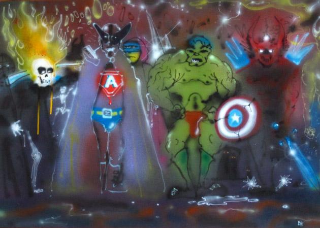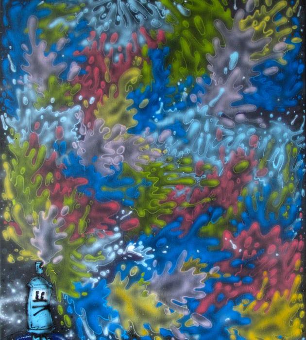 Michal Škapa na cestě od mnoha forem graffiti, přes grafický primitivismus latinskoamerických pixaçao a pop-artovou ironii, dospěl až k abstraktním plátnům. Stvořil postavičku Mr. Spreje, jakési zosobnění a zároveň zesměšnění revolty spjaté s graffiti. Jemně škodolibý Sprej a jeho nespočetní kolegové se pouští do předem prohraných bitev, nasazuje si zločinecké masky a podobně jako roztékající se „smajlíci“, zaniká i on na civilizačním smetišti. Ironický podtext na první pohled vlídných a vlastně známých obrazů (Škapa pracuje s chronicky známými reklamními motivy, jako je např. smajlík) s postupující abstrakcí získává na vážnosti. Pichlavá sdělení se stávají důraznými, když se ocitáme Na konci světa, v obklopení tisíců doslova „vyplivaných“ sprejů. Sprej a jeho nesmyslná činnost, ať už ta kreativní (popsané zdi), nebo ta revolučně-hrdinská (sprejové bitvy, kdy nevíme kdo je vlastně hrdinou), může být odkazem k marnosti některých lidských snah, v přeneseném smyslu k marnosti vůbec.